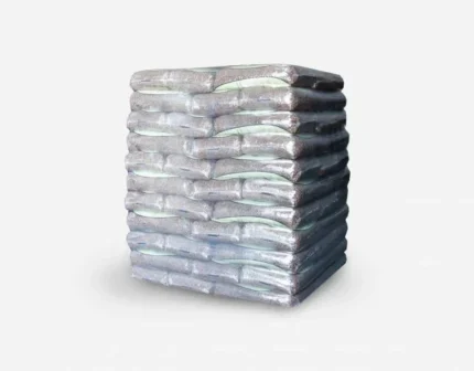 Palete com 66 sacos de pellets de Limouzi – 15 kg, 100% resina, alta eficiência.
